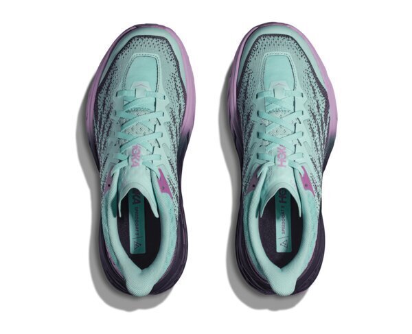 Der Speedgoat 5 ist ein echter Trail-Schuh, der dank seiner extrem griffigen Vibram® Megagrip-Sohle mit Traction Stug auf losem Untergrund brilliert. Er behält die gleiche Sohlenhöhe und das MetaRocker-Profil bei, kombiniert aber eine leichtere Zwischensohlenmischung mit einem robusten, doppellagigen Jacquard-Mesh-Obermaterial, um jedes Terrain souverän zu meistern. GEEIGNET FÜR: - Trailrunning - Wandern MERKMALE: - Doppellagiges, speziell entwickeltes Jacquard-Mesh-Obermaterial - Zehenschutzkappe - MetaRocker™ im Zehenbereich - Vibram® Megagrip mit Traction Stug - Veganes Design - Flache, gefaltete Zunge - Verstärkter Fersenkragen - Geformte EVA-Einlegesohle - Kompressionsgeformte EVA-Schaum-Zwischensohle - 5-mm-Stollenprofil - Obermaterial aus recyceltem Polyester (34 %) - Schnürsenkel aus recyceltem Nylon (70 %) und recyceltem Polyester (30 %) - Obermaterial der Einlegesohle aus recyceltem Polyester (100 %)
