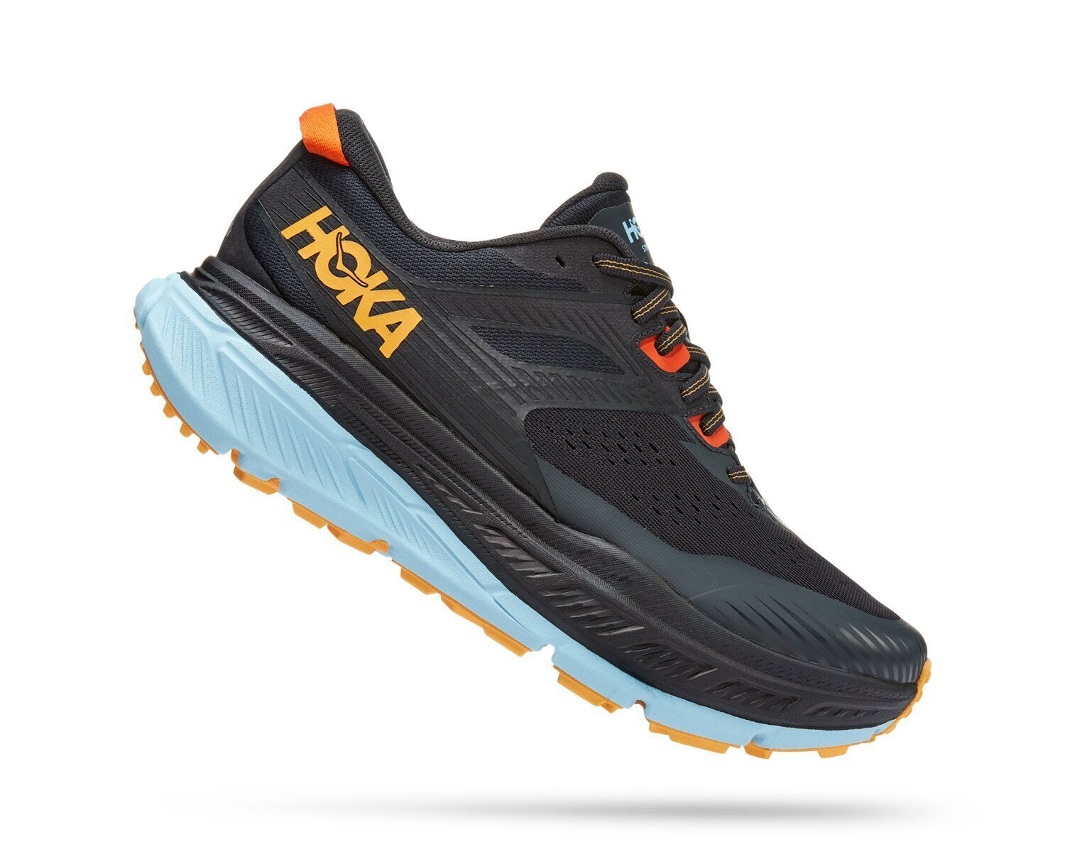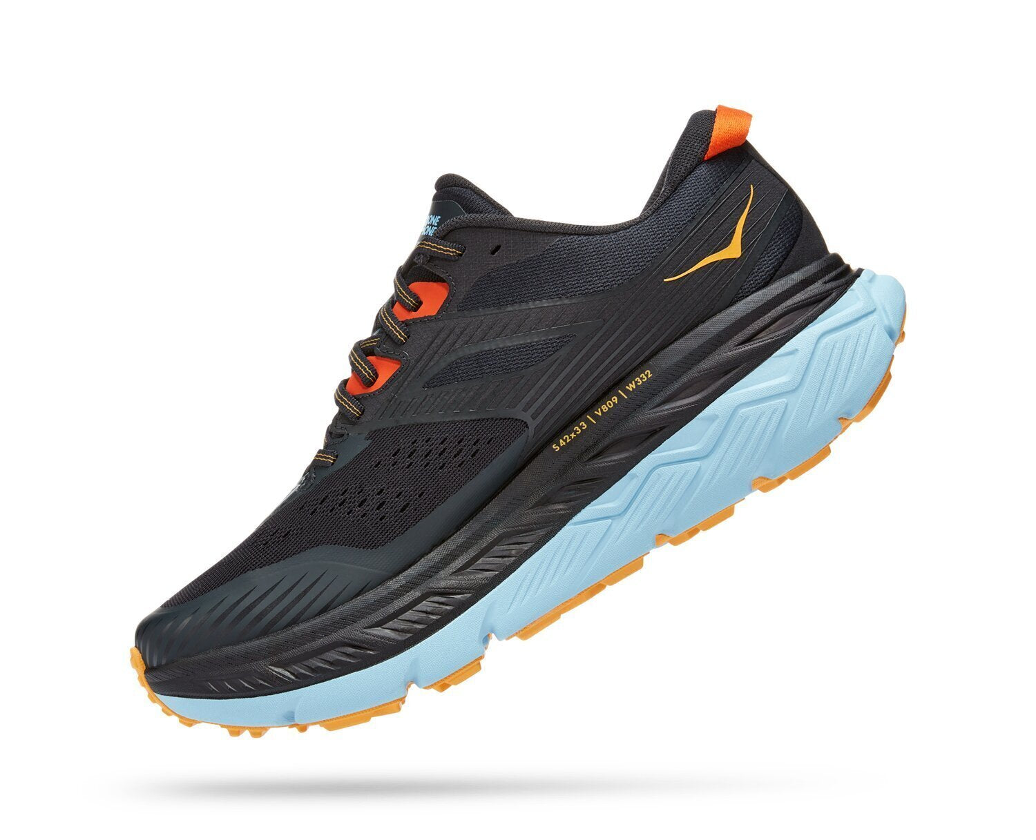GEEIGNET FÜR: - Trailrunning EIGENSCHAFTEN: - Funktionsmesh - Anatomisch geformte Stützflügel entlang der Schnürleiste für sicheren Halt - TPU-verstärkte Zehenkappe für zusätzliche Strapazierfähigkeit - CMEVA-Zwischensohle mit dem größten Volumen aller HOKA-Modelle für leichtes, optimales Dämpfungsgefühl - Breite Zwischensohle und bequeme Passform für maximalen Komfort - MetaRocker™ im Zehenbereich für überragende Stabilität und ein geschmeidiges Abstoßen - Breites, schmales Stollenprofil für vielseitige Traktion auf unebenem Gelände - Zonierte Gummisohle für leichte Strapazierfähigkeit - 4 mm Stollenprofil für Traktion in jedem Terrain - Zunge aus recyceltem Nylonmesh (65 %)